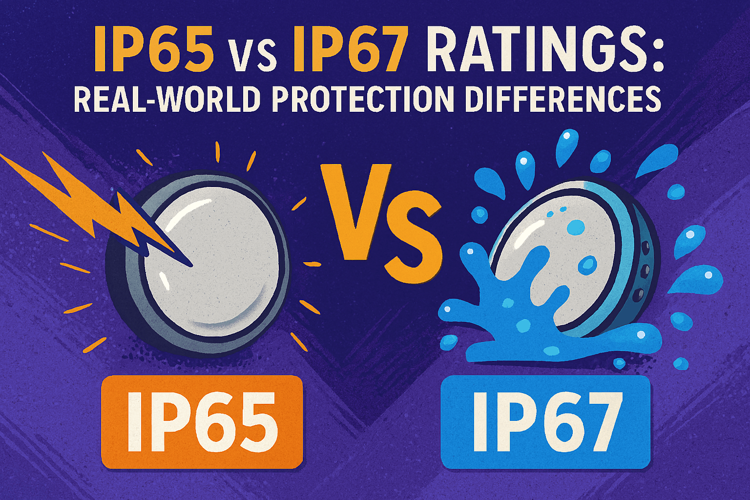 IP67 doesn’t automatically protect you from pressure washing; IP65 won’t forgive a flood. |